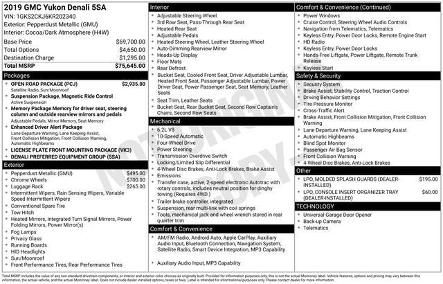 With its impressive towing capacity, spacious interior, and commanding presence, the 2019 GMC Yukon Denali is the ultimate expression of refined capability. Whether you're embarking on a family adventure or tackling your daily commute, this SUV is ready to elevate your driving experience.