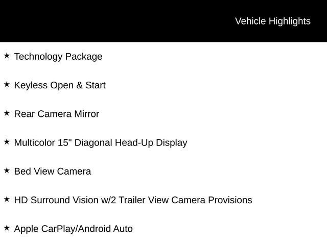 - Allows driver to see inside the cargo bed on the infotainment display to help with 5th wheel or gooseneck hitching and to check cargo