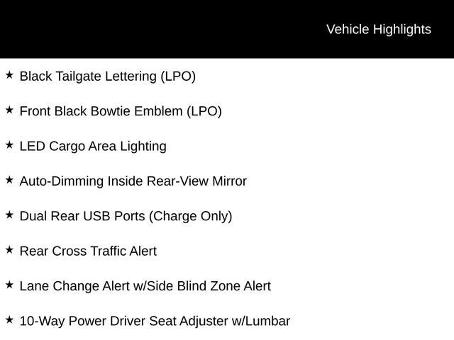 - Black tailgate decal lettering (replaced with Black bowtie when Multi-Flex tailgate is ordered)